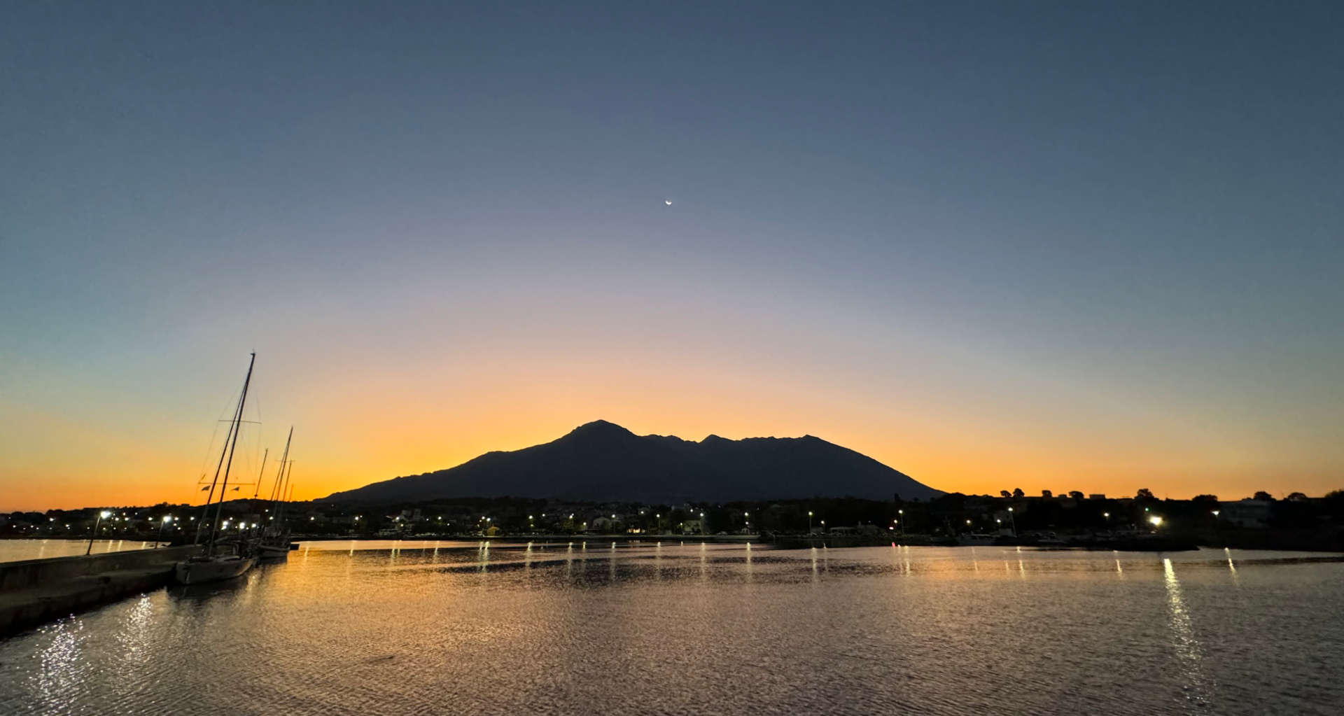 Above: Samothrace towards the East – Mount Athos from Órmos Platí, Lemnos, at sunset